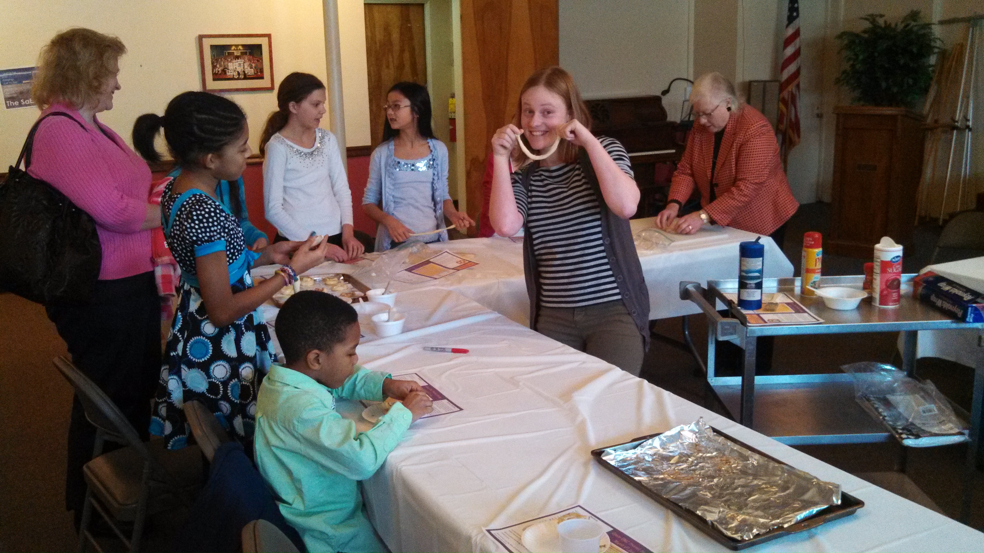 Pretzel Sunday offers a wonderful, inter-generational hour of rolling dough and baking pretzels. Cinnamon sugar seems to be the favorite topping at my church. Read on for a pretzel dough recipe for a crowd…