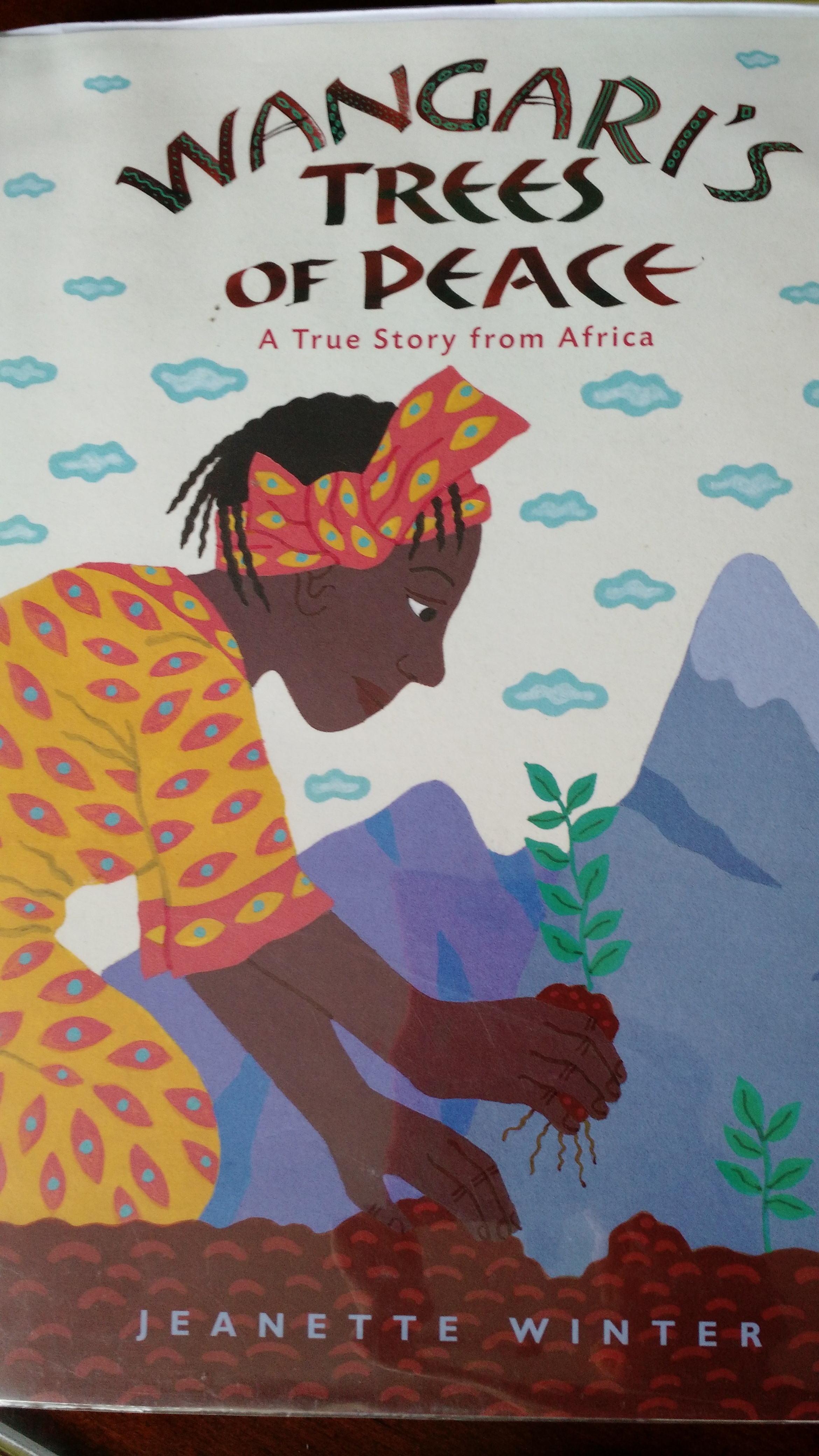 During today’s children’s message, I invited the congregation to consider this question before I shared highlights from Wangari’s Trees of Peace, a picture book by Jeanette Winter. It fit very nicely with the week’s scripture, the Parable of the Mustard Seed, Mark 4:30-32. If you are not familiar with Wangari Maathai, through her efforts, tens of millions of trees were planted in Kenya, replacing many that had been cut down for development. She was the first African woman to win the Nobel Prize for Peace.