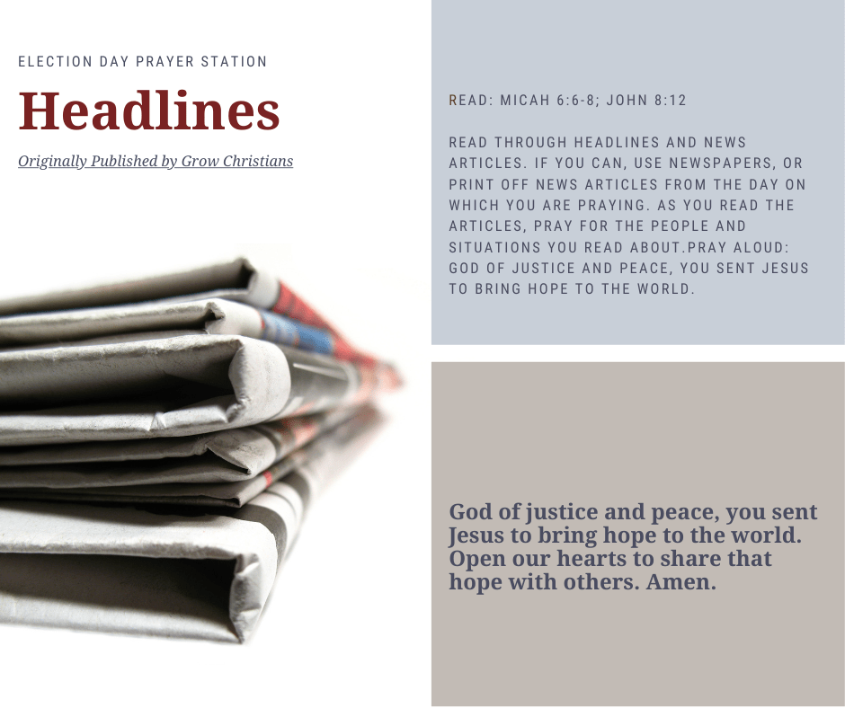 You are free to use and share the graphics I created below. Please give credit to Grow Christians and link your posts to the original article: https://www.growchristians.org/2020/10/22/at-home-prayer-stations-for-election-day/