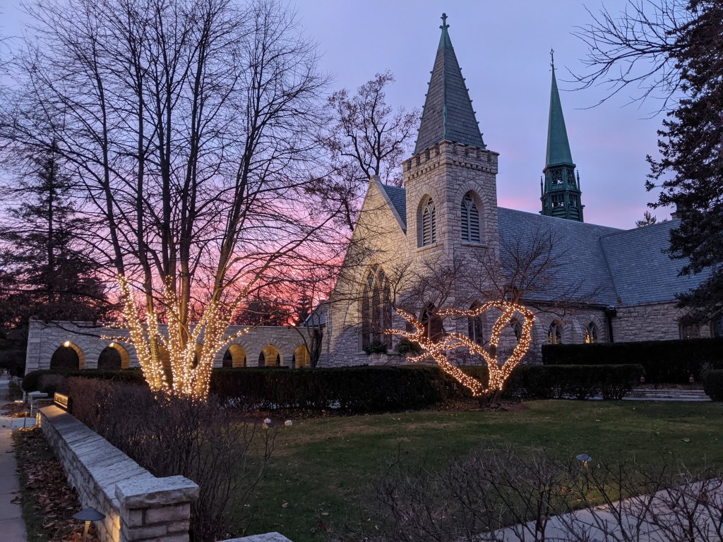 Gathered here in your sanctuary aglow with glass and garland may we be formed and re-formed into the community you wish us to be. As we journey toward the manger and the mystery of love incarnate, may we be people of hope and makers of peace.